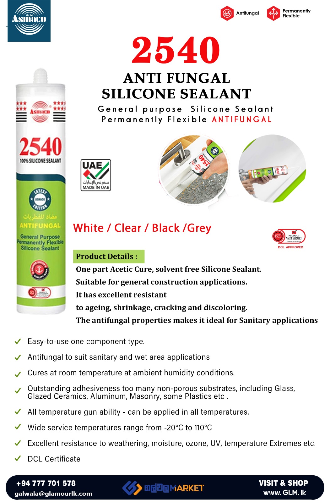 ASMACO 2540 Anti Fungal Silicone Sealant (CLEAR)